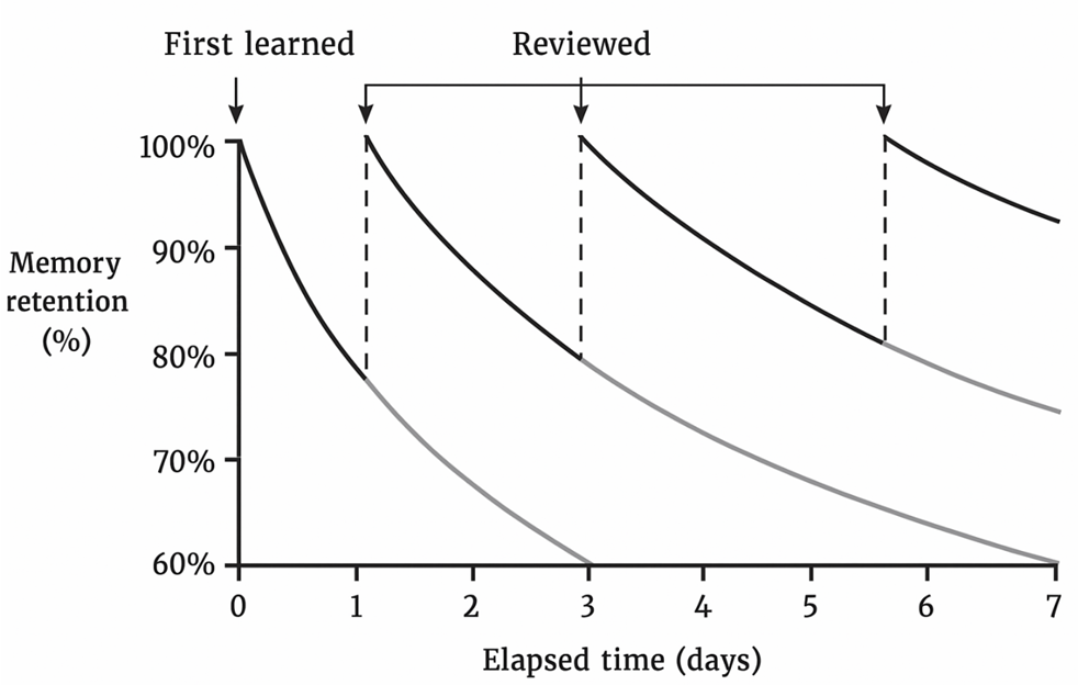- Why It Works: Without review, we forget a huge portion of new information quickly (some studies say up to 70–80% by the next day). A quick review or self-quiz within a day interrupts this forgetting process and signals to your brain that this information is worth retaining (cueing the consolidation process during sleep). It's the first important boost in spaced repetition.