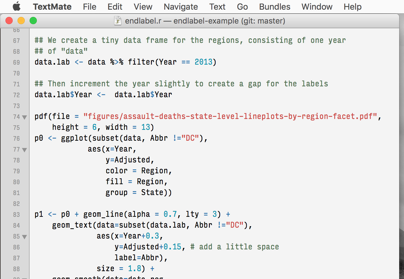Figure 7.2: Part of an R file being edited in TextMate.